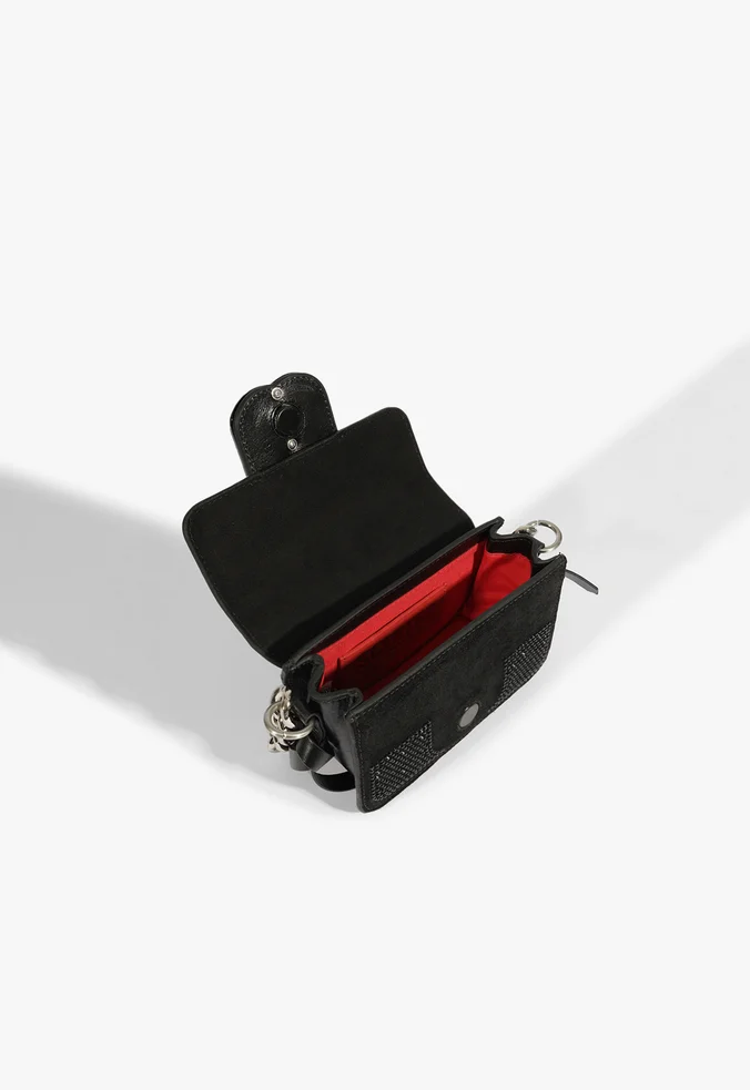 Deslumbrante, essa shoulder bag pequena em camurça é a peça chave para adicionar um toque de glamour ao seu look. As aplicações de cristais brilham com elegância, e o fechamento em tampa com ímã oferece praticidade e sofisticação. O detalhe do logo Schutz em metal bicolor é um charme à parte, e as duas opções de alças — uma curta e outra longa — permitem que você escolha entre um estilo clássico ou descolado.