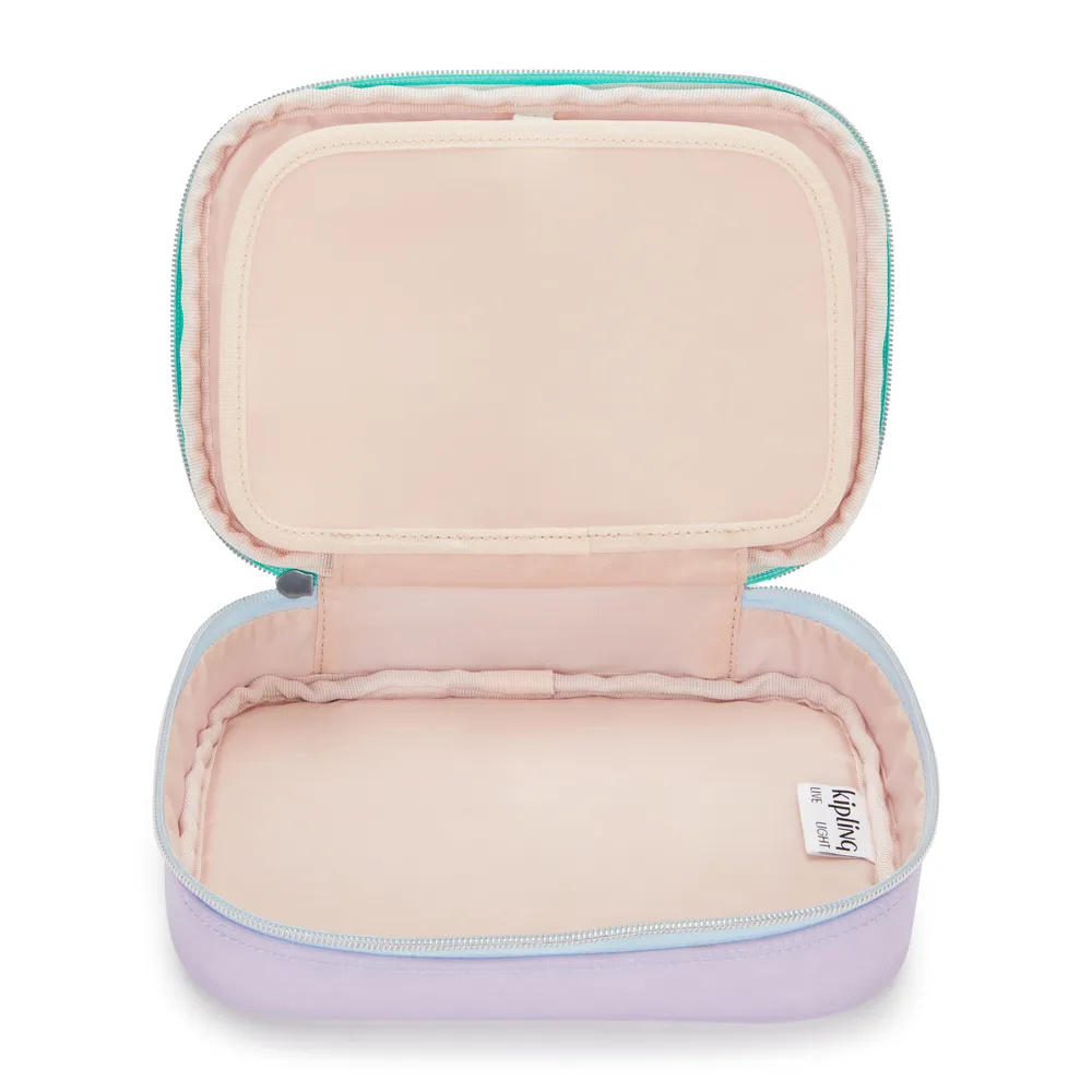 Com este estojo grande, tanto sua mesa quanto sua mente ficarão organizadas. Seja no trabalho ou na escola, você ficará muito feliz com os 26 elásticos desenvolvidos especialmente para manter suas canetas e lápis em um só lugar. Sabia que o estojo também comporta até 100 canetas? Ele é ideal para você, que sempre perde suas canetas no fundo das suas bolsas da Kipling!